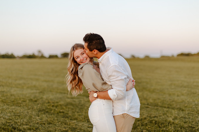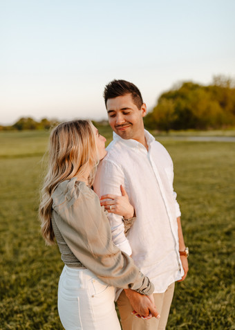 To finish our night, we headed to their favorite park for an outfit change and a change of scenery. Here Nathan and Emma, froclicked in the flowering fields, ran, gave piggyback rides, laughed, kissed, and snuggled against the green rolling hills of the midwest. As always, what Nathan and Emma thought would be an awkawrd night of having their photo taken turned into a straight-up magical evening that they would happily relive any day...