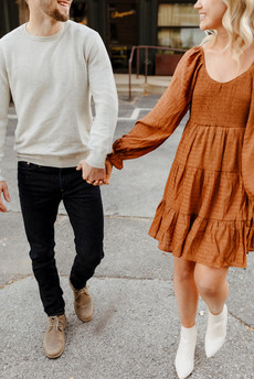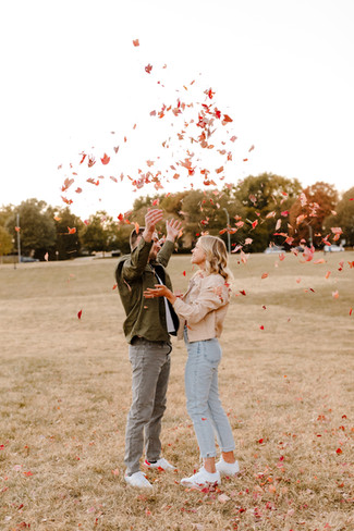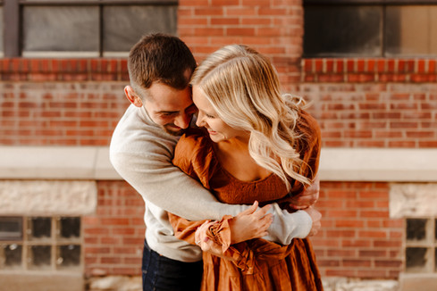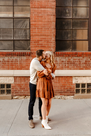 John and Hannah's engagement session ended up being one of my favorites from this midwestern fall season. I connected with these two on such a fun level, we chatted and laughed about so many things! I'm especially thankful for their ability to laugh with me while we got lost in the historic West Bottoms, and their insights and tips on all things Maui, Hawaii since we'll be headed there soon. But what really set this couple over the top was everything THEY planned and how THEY interacted with me and my camera! Their outfits were on point, and their location choices were perfect, but their willingness to get the shot made for the perfect fall engagement session. You'll definitely want to save this post as inspiration for your Kanas City Fall Engagement Session!