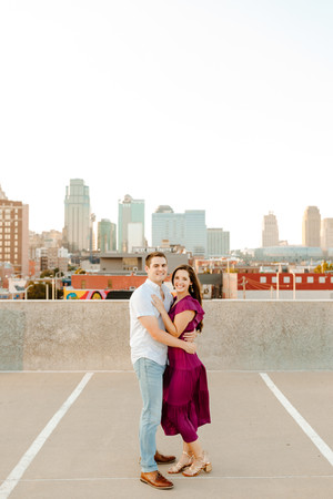 Secondary locations like parking garage rooftops in The Crossroads! Parking garage rooftops make for such a great city feel for your engagement photos. You can dress this location up or down depending on your overall vibe and desire from the images. Jane and Trent dressed up their rooftop photos with a button-down and jeans for Trent and a bold, vibrant, pink dress for Jane. We soaked in the setting summer sun over the buildings of the Crossroads and their session turned out to be another favorite from the season!