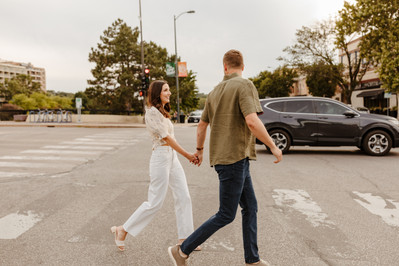 If you're wanting a versatile location for your engagement photos in Kansas City, I recommend you consider, the Country Club Plaza. The Plaza district is a hidden gem when it comes to awesome locations for your engagement or couples' session. It offers city vibes with its busy streets, swanky cocktail bars, and shops, deep-rooted romantic Spanish architectural interests, European art, murals, rooftops, and walkways. The location is also complemented by natural elements such as bridges, water, some green space, fountains, holiday lights, and more. The Plaza is also in close proximity to additional locations such as Loose Park, The Nelson Atkins Art Museum, the Westport district, and Brookside shops, and is a short drive from downtown. This location for your engagement session offers a variety of backdrops, can take on and enhance any outfit choice, and is a fantastic central location with ample parking options. There's so much to love about the Country Club Plaza when choosing your location for photos.